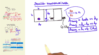 En el desarrollo del cálculo de la inercia homogeneizada de una viga rectangular, se ha utilizado el área homogeneizada (Ah) en lugar del área real de hormigón (b·h) al aplicar el teorema de ejes paralelos para trasladar el área de la viga al nuevo eje de gravedad.