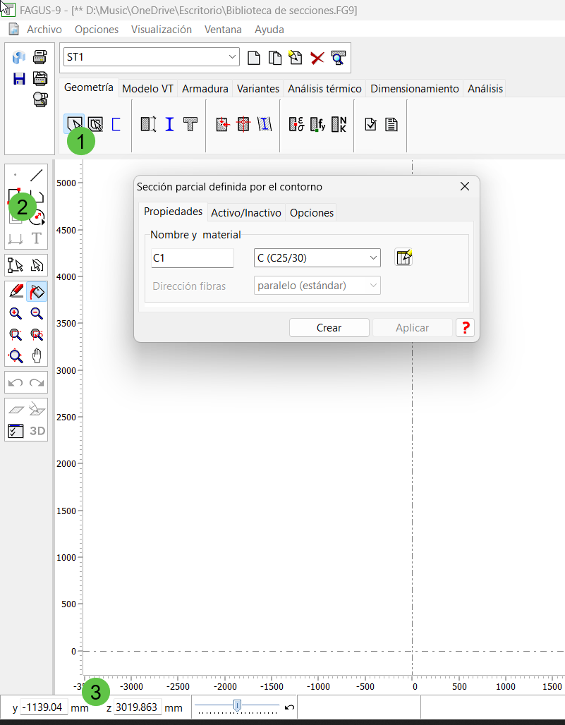 En FAGUS hay muchas ocasiones en las que puedes introducir coordenadas en la parte inferior izquierda. Si quieres meter la sección por puntos, si quieres introducir huecos en la sección, para situar la armadura, etc.