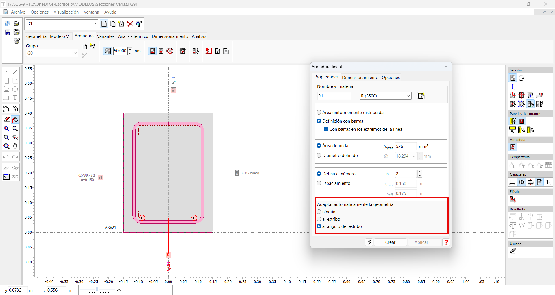 Estas opciones sirven para adaptar la geometría de las capas de armadura cuando estamos haciendo un dimensionamiento de la misma, como verás más adelante en el curso.