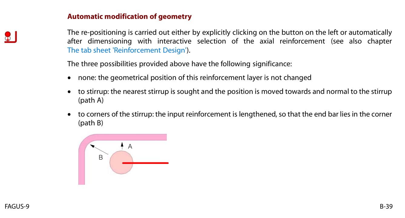 Si elegimos la opción al estribo se sigue el camino A, es decir se busca el estribo más cercano y se mueve la posición perpendicularmente a este estribo.