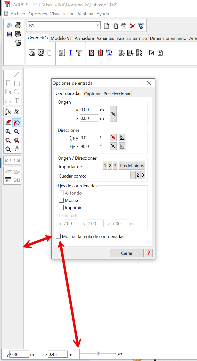 Y desmarques la opción "Mostrar la regla de coordenadas".