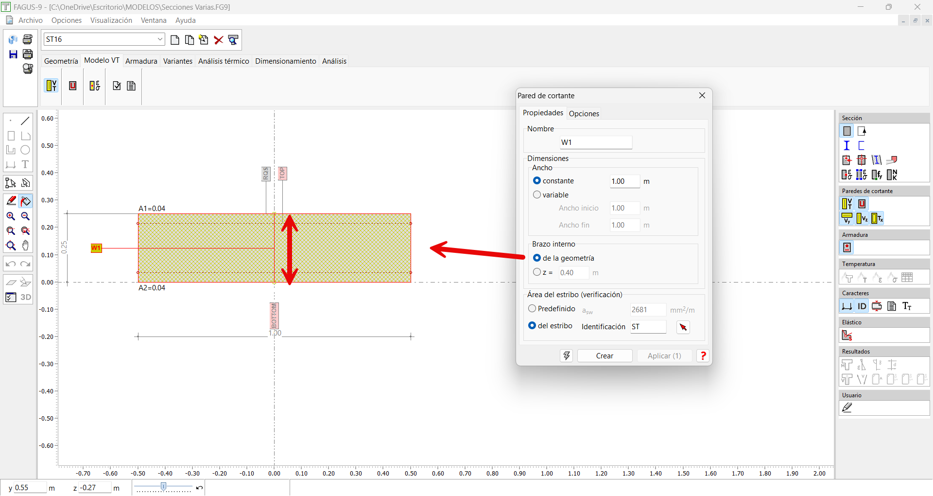 Veo que la viga tiene un canto de 45 cm, pero el z que coge para la pared SWZ es de 0,33, y no 0,9·0,45=0,41. Con esto quiero decir que ¿no nos podemos fiar de cuando el programa mete él la z y es mejor que la metamos nosotros a mano?